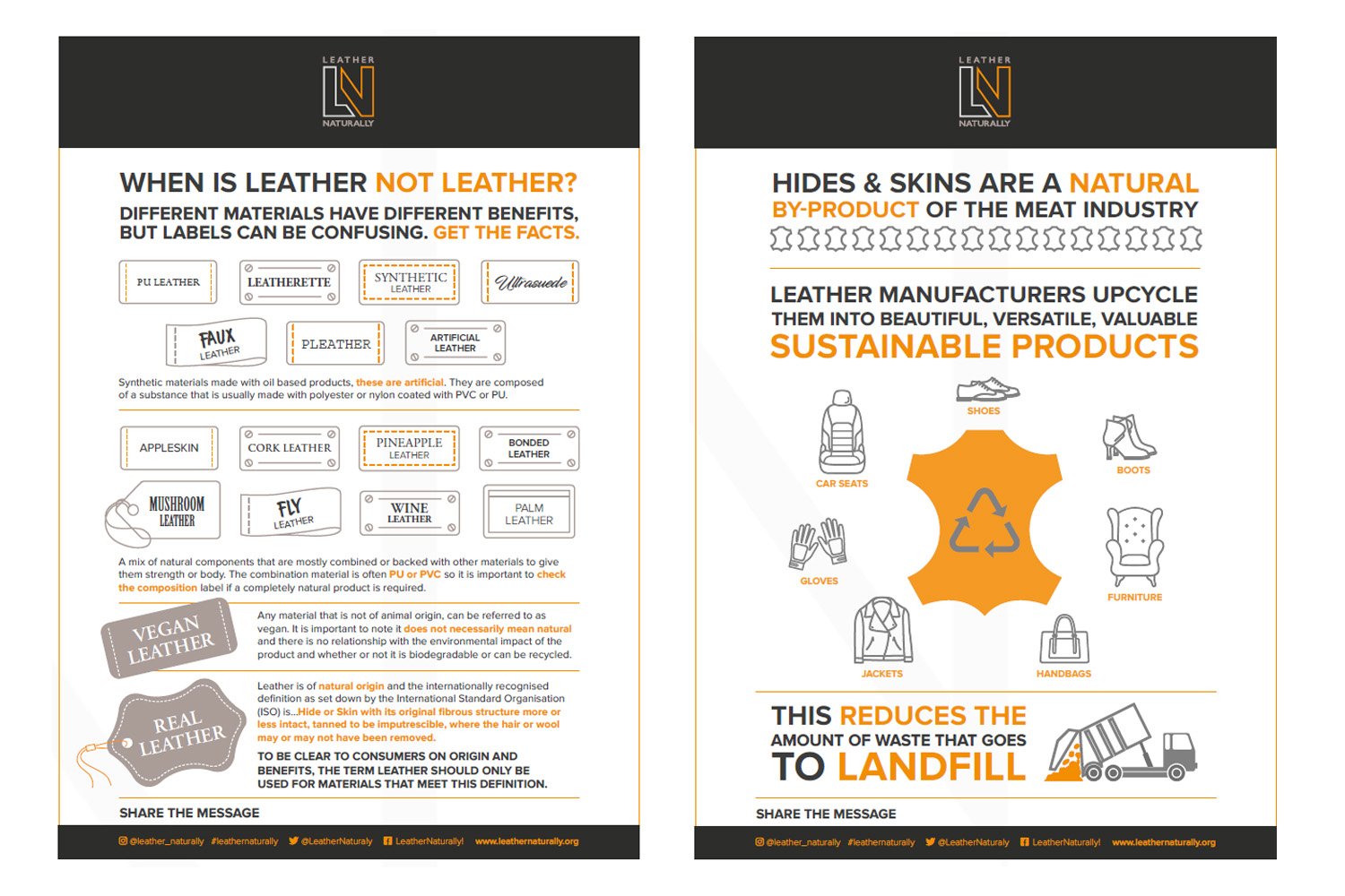 Labelling of synthetic alternative material for the interior of cars often incorporates the term ‘leather’ in an attempt to associate with the positive benefits of leather but without being transparent about the true origin of the synthetic material used.