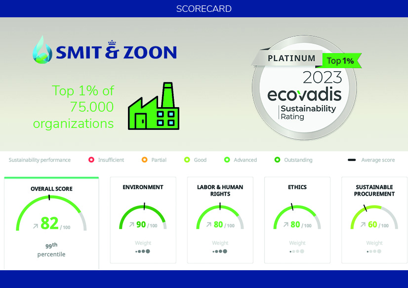 We are proud to announce that Royal Smit & Zoon has been awarded the EcoVadis Platinum rating, placing it to the top 1% of 75.000 organizations assessed globally. The Platinum rating, up 15 points from 2022, reflects our 202-year dedication to sustainability and is an improvement from the company’s Gold rating in 2022 and 2021. It also demonstrates our ongoing efforts true to our mission to create a socially and environmentally sustainable leather value chain, together. We are really proud to achieve our first Platinum rating. Doing EcoVadis’ rigorous assessment for more than 5 years already, demonstrates clearly how committed we are to ongoing improvements. While the journey to this score is not easy, it is also an encouragement to continue our efforts hand in hand with all our stakeholders. Our goal is to maintain this EcoVadis Platinum rating, while considering it as a journey and continuously keep on moving forward with our ESG ambitions. In the spirit of our mission, we want to continue to raise the bar in terms of sustainability, while collaborating for a future-proof leather industry. Aukje Berden, ESG Director Royal Smit & Zoon Four impact themes EcoVadis is a globally recognized methodology that assesses the sustainability performance of more than 75.000 organisations across a range of criteria grouped into four impact themes: “Environment”, “Labor & Human Rights”, “Ethics” and “Sustainable Procurement”. These evidence-based assessments are refined into easy-to-read scorecards, providing zero to one hundred (0-100) scores and medals (bronze, silver, gold, platinum). Our company scored particularly high in the areas of Environment, Labor practices and Ethics. Sustainable procurement is a key focus area for Royal Smit & Zoon as it raises the bar across the whole supply chain and delivers further assurance to customers and stakeholders that their expectations are being met by everyone. “Sustainability has always been key to our business. As a company, we are committed to creating a socially and environmentally sustainable leather value chain, putting sustainability at the heart of what we do. Achieving our Platinum rating from EcoVadis reflects this commitment. It demonstrates to our customers and wider stakeholders that we are a trusted partner when it comes to sustainability.” Marc Smit, CEO Royal Smit & Zoon EcoVadis continuously develops and improves its assessment, positively impacting sustainability performance across value chains, fostering transparency and driving innovation. Achieving our Platinum medal confirms our progress in all these areas. EcoVadis evaluated Royal Smit & Zoon’s policies, actions and results across all its businesses and production facilities worldwide. Interesting for you Discover more news Royal Smit & Zoon maintains EcoVadis GOLD Rating We are proud to announce that Royal Smit & Zoon maintained its EcoVadis GOLD medal. With this recognition, Royal Smit & Zoon belongs to the top 9% of all companies assessed by EcoVadis. Behind the scenes of Royal Smit & Zoon’s ESG Roadmap and reporting What is the process behind the ESG report and why is ESG so important? Aukje Berden, ESG Director of Royal Smit & Zoon, explains more about this topic. Smit & Zoon achieves Ecovadis SILVER CSR Rating We are proud to announce that Smit & Zoon has received 62 points in the Ecovadis Corporate Social Responsibility (CSR) rating, earning a SILVER award. With a score higher than 90% of all of the EcoVadis assessed companies, we have once again proven to belong to the absolute top in sustainability-related activities. More news Go to all news articles Discover Stay informed Receive the latest company news and industry updates Subscribe to our newsletter Share this: